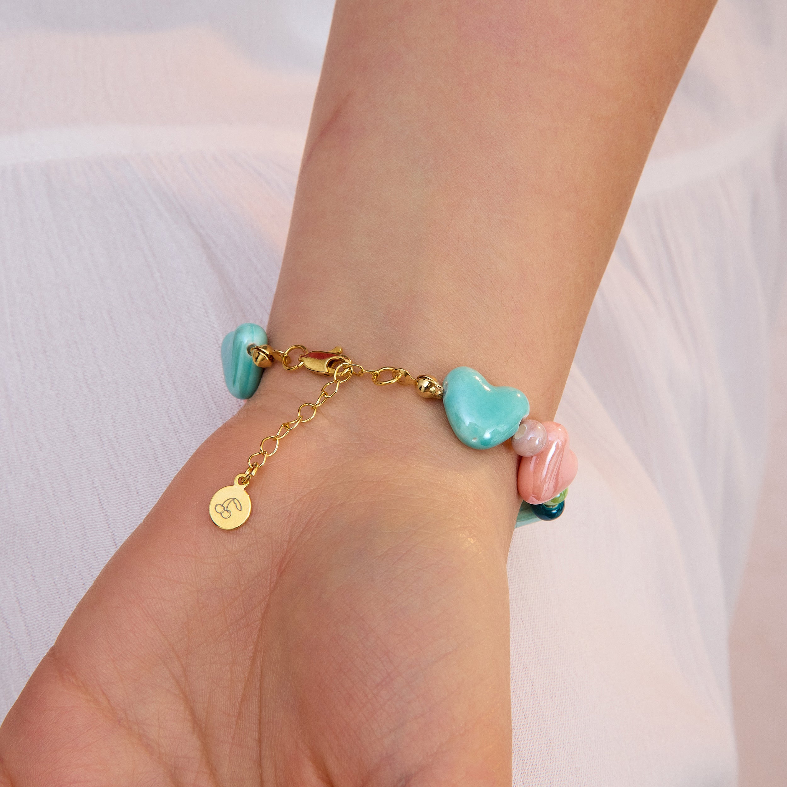 🩷🩵❤️ Tatlı mı tatlı, rengarenk kalplerle dolu Candy Hearts Bileklik adeta çocukluğun neşesini bileğine taşıyor. Parlak ve pürüzsüz seramik kalp boncuklar, enerjik ruhunu tamamlamak için burada!