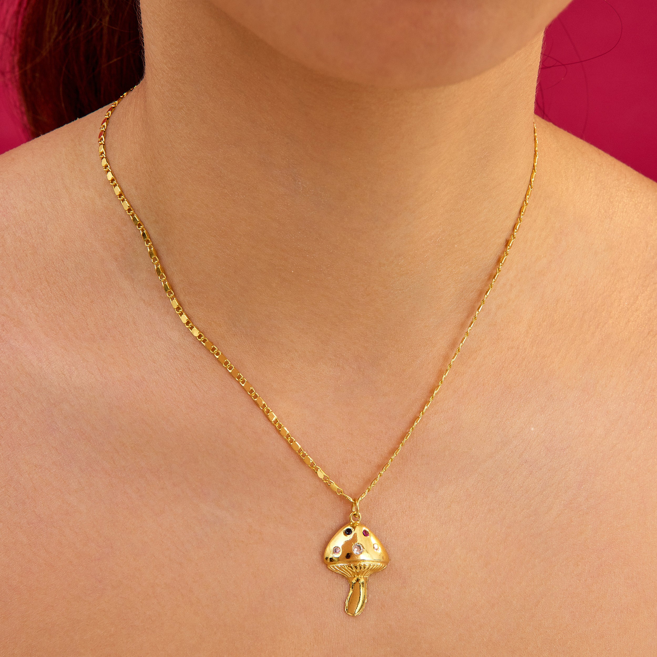 Parıltısı ormandan ilham aldı, ışıltısı seninle tamamlandı. Masalsı detayları ve büyüleyici zarafetiyle Golden Mushroom Kolye, doğanın ruhunu stiline taşır.
