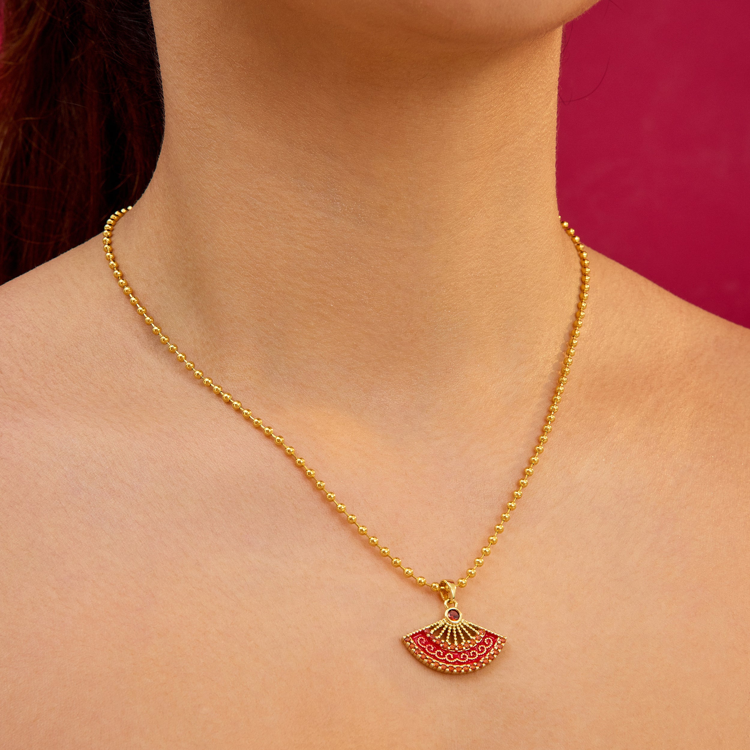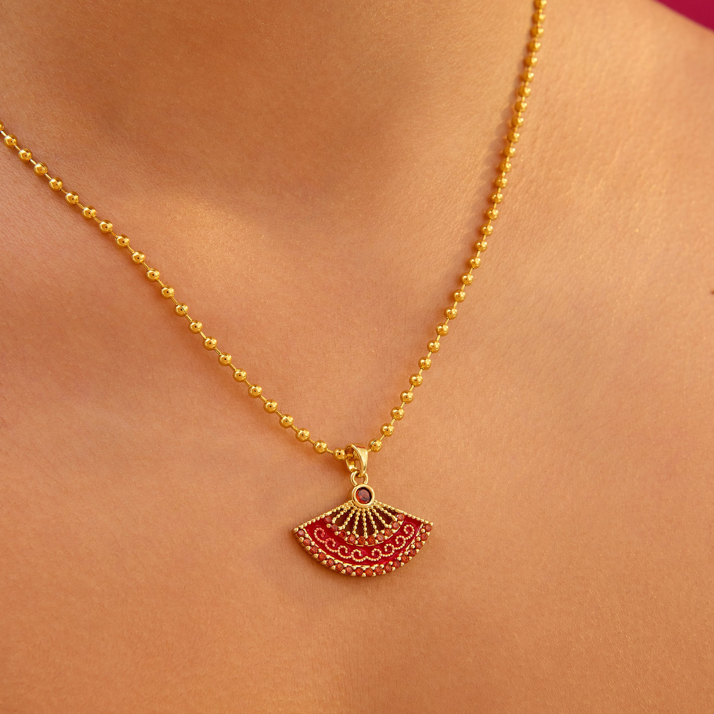 Gelenekten ilham, ışıltıdan güç alan bir duruş… Kırmızı Yelpaze Kolye, zarafet ve zarif detayları bir araya getirerek klasik ama dikkat çekici bir görünüm sunar.