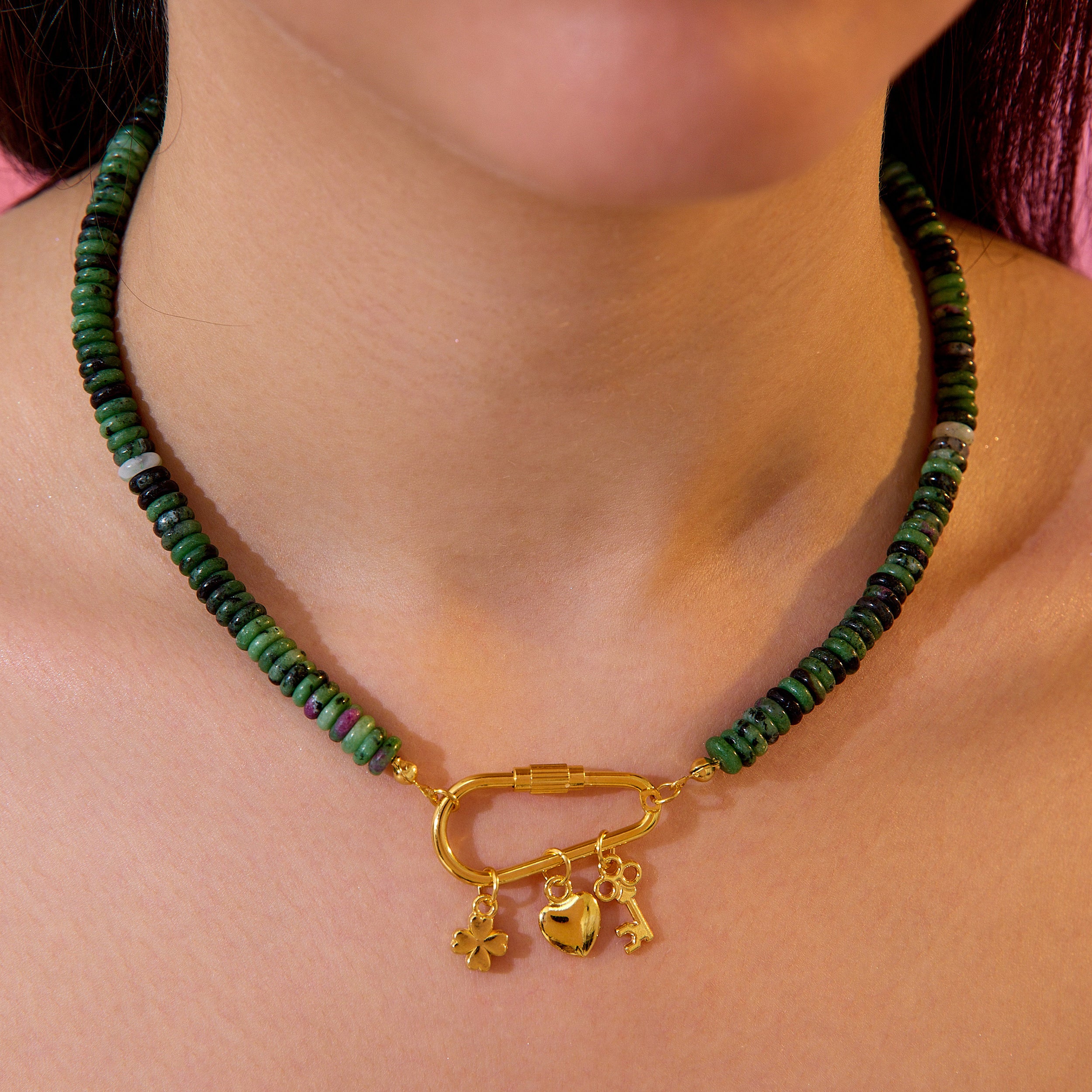 Doğanın enerjisini taşıyan Lucky Charms Anyolit Kolye ile, kalbini koruyan semboller bir arada. Her biri anlam yüklü charm’lar: