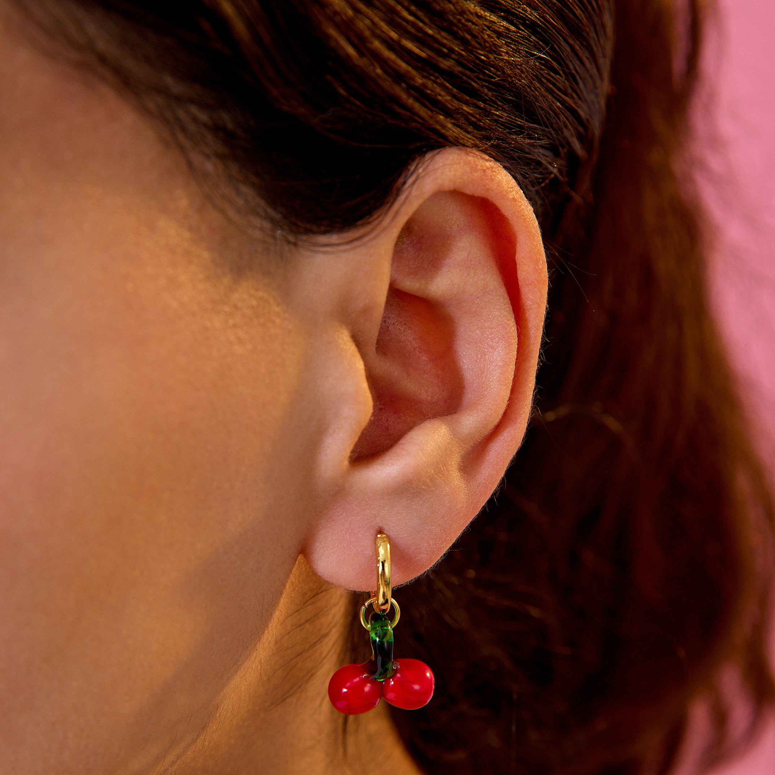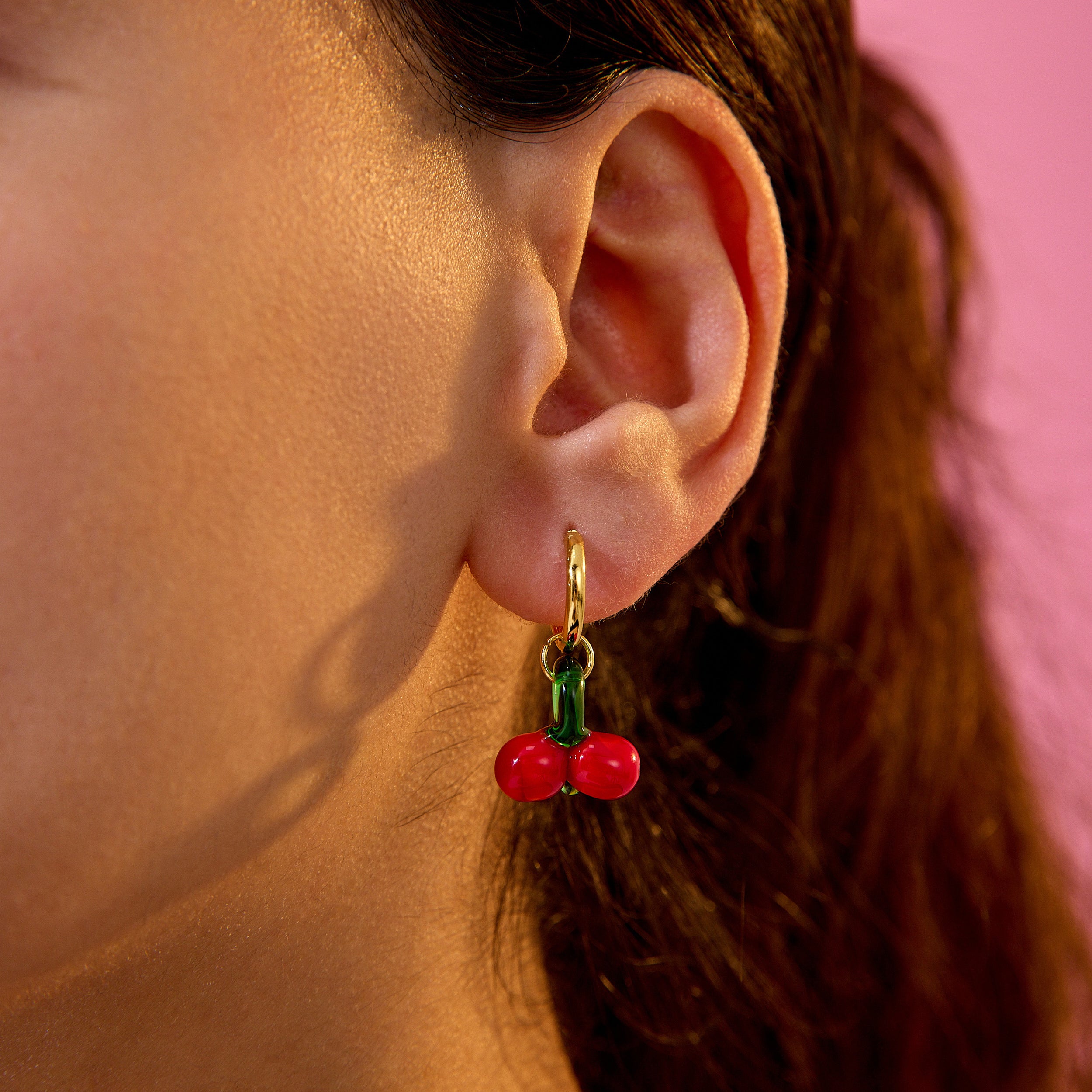 🍒 Tatlı bir dokunuşla stilinize neşe katın! Cherry Murano Küpe, el yapımı murano camından oluşan kiraz figürüyle renkli ve enerjik bir görünüm sunar. Yaz kombinlerinizin vazgeçilmezi olacak bu sevimli küpe, her bakışı üzerine çekecek!