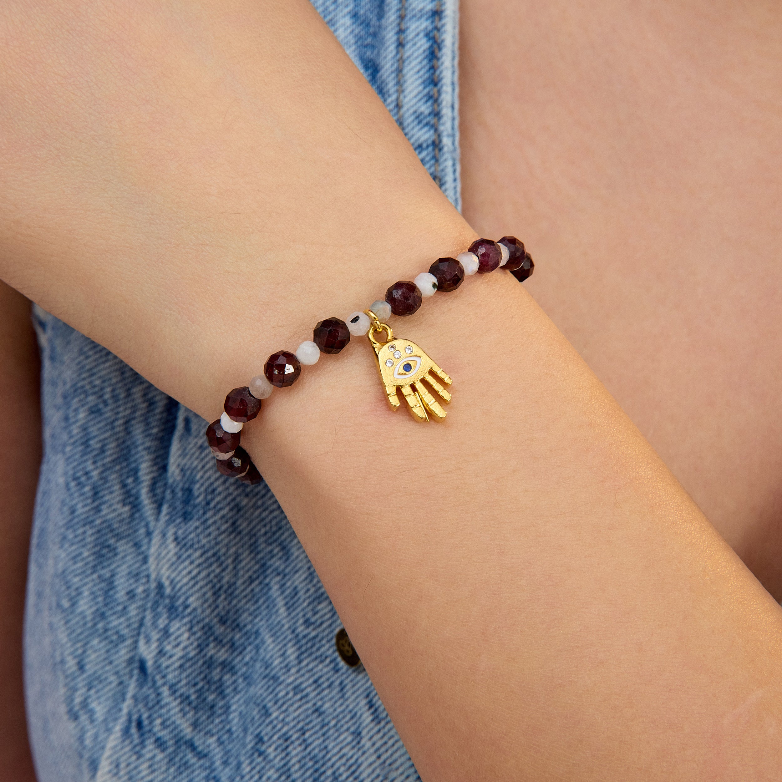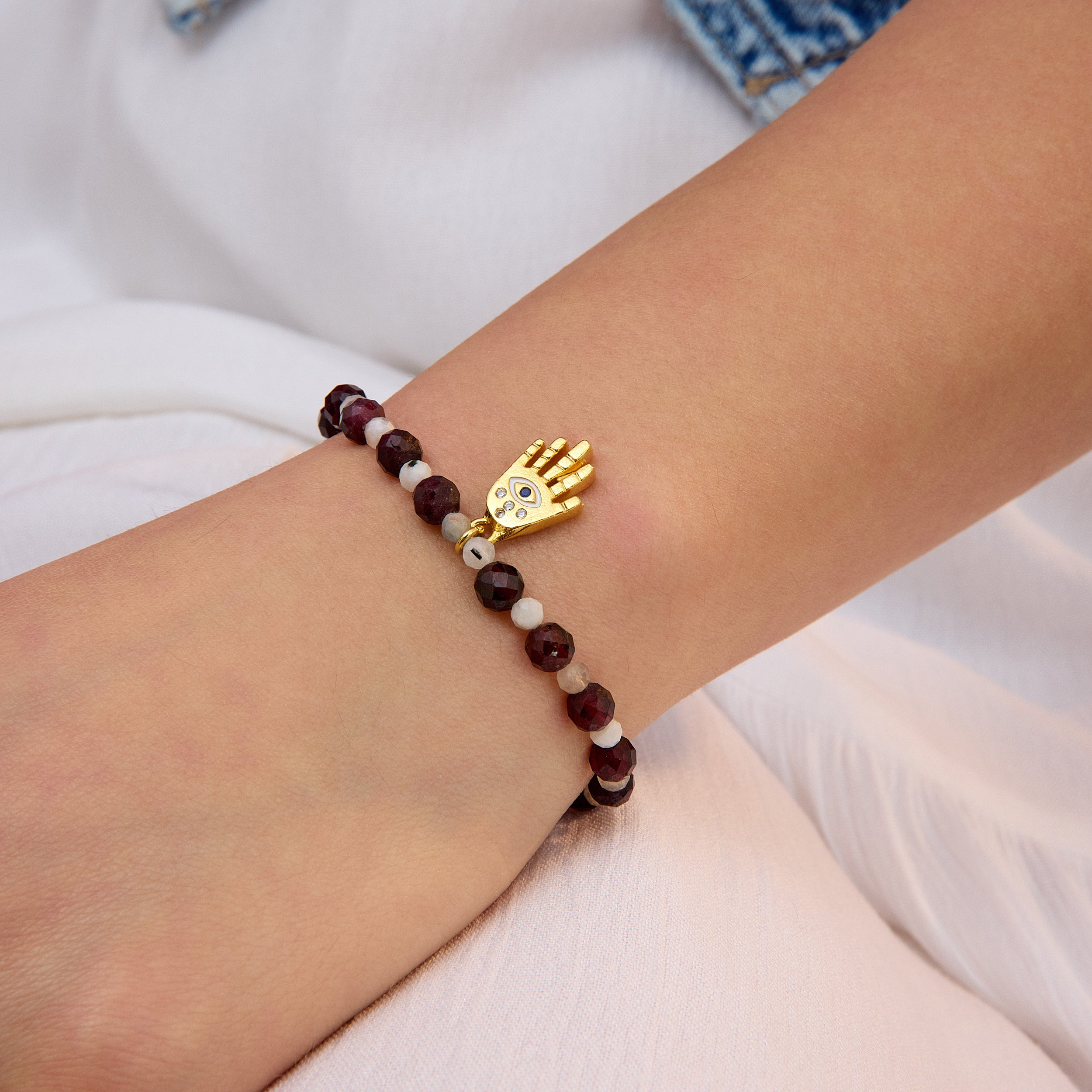 🪬Koruyucu enerjilerle dolu AuraHand Bileklik, güçlü granat taşı ve yumuşak ay taşıyla tasarlandı.