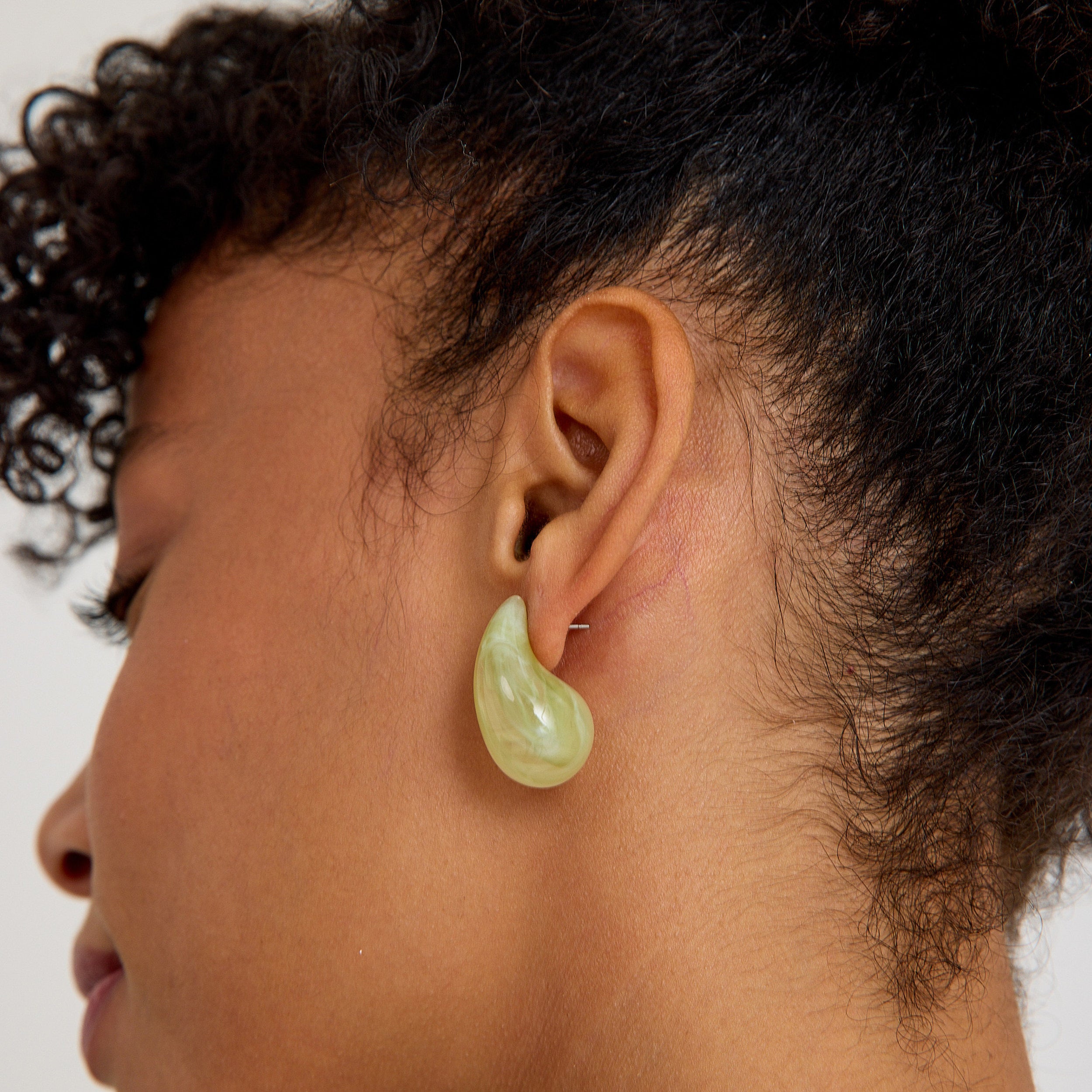Doğadan ilham alınarak tasarlanmış Green Drop Küpe, zarif ve sade şıklığın vücut bulmuş halidir. Yumuşak yeşil tonlarında, damla formunda tasarlanan bu küpe, ışığa göre değişen yarı saydam yapısıyla her açıdan farklı bir ışıltı sunar. Hafif yapısı sayesinde gün boyu konforlu kullanım sağlar. Günlük stilinizi doğal bir dokunuşla tamamlamak veya minimalist bir akşam şıklığı yaratmak için ideal bir tercih.