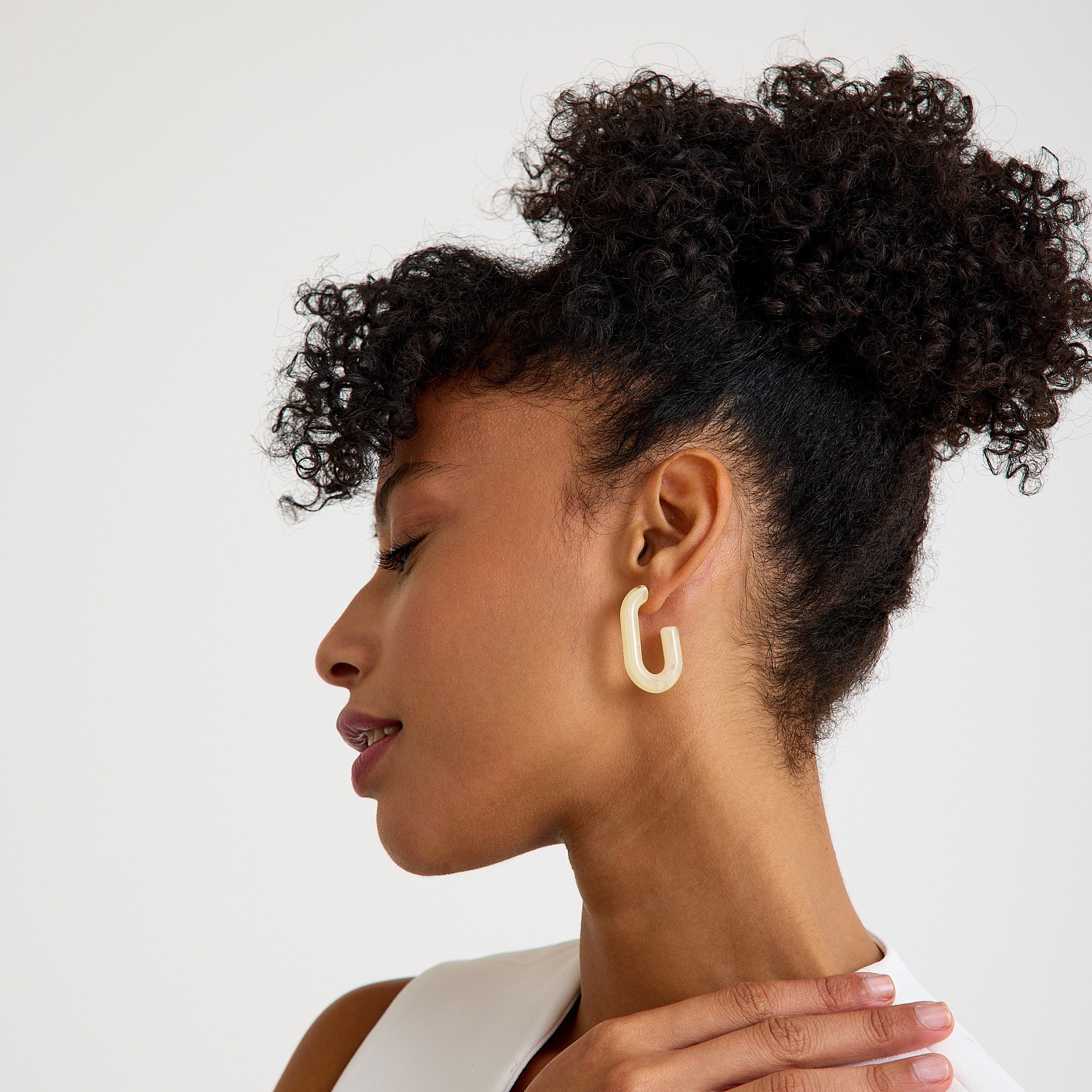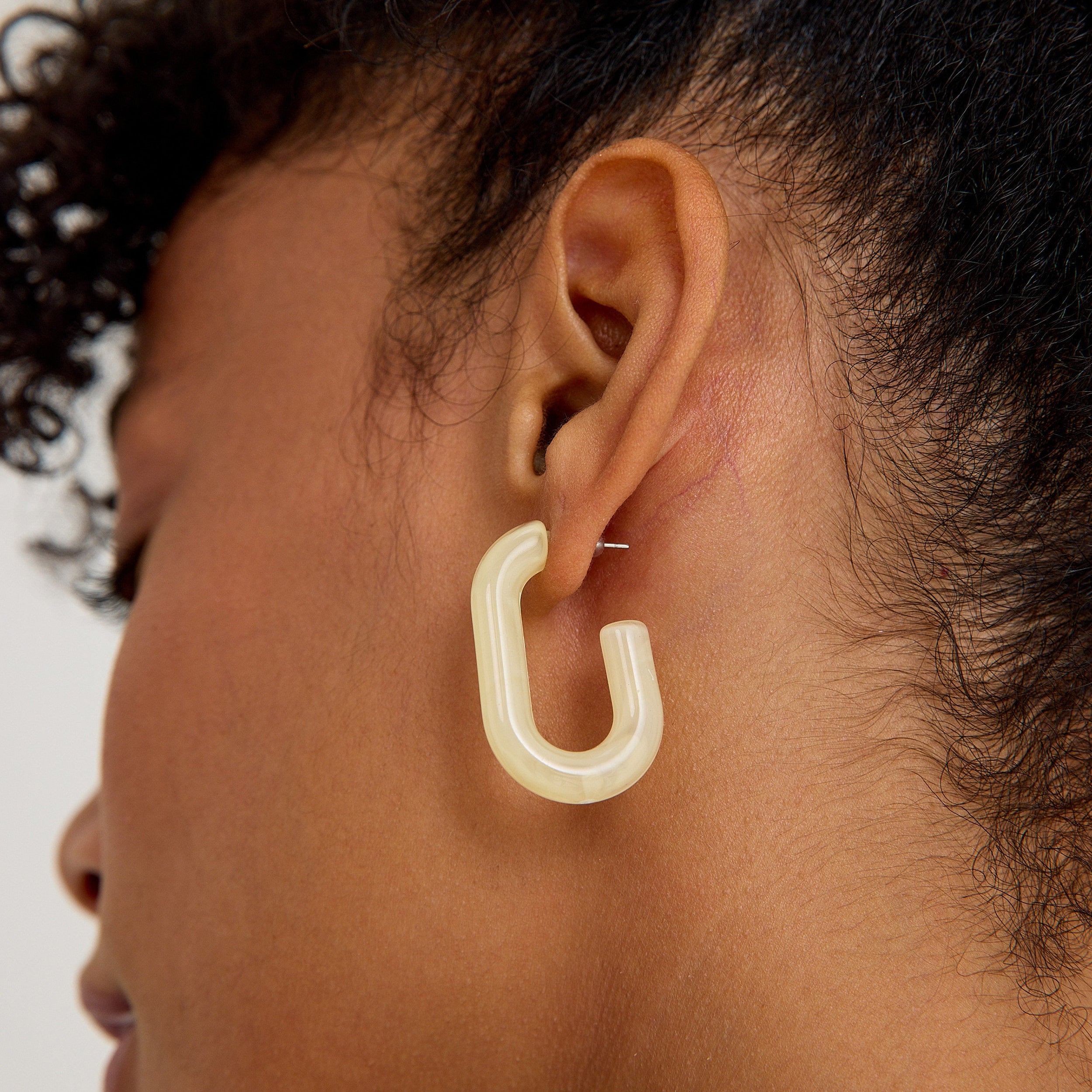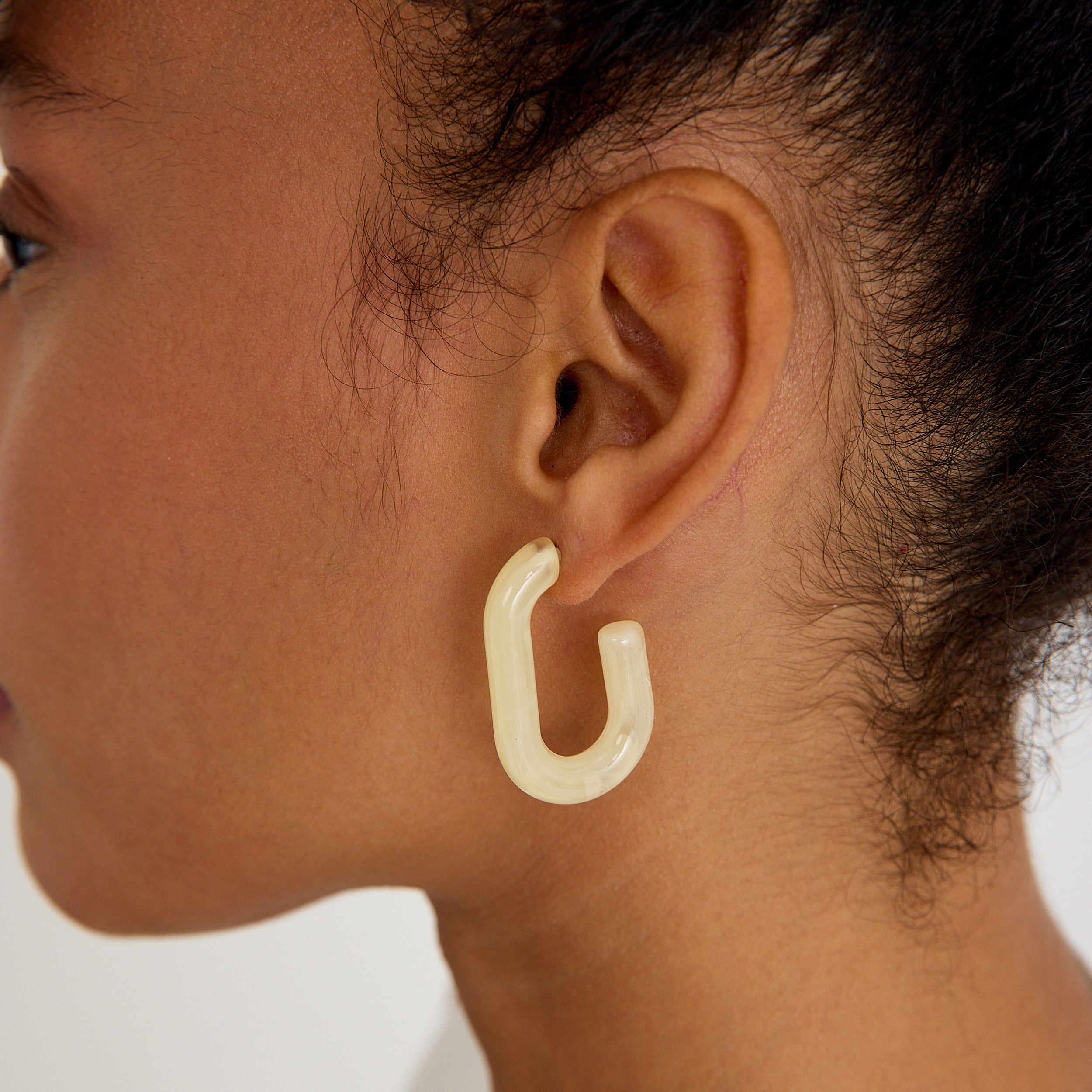 Modern form, sade şıklıkla buluşuyor: Soft Loop, açık krem tonlarındaki akrilik yapısıyla zarif, yumuşak ama dikkat çekici bir halka küpe tasarımı sunuyor. Kendine özgü kıvrımlı formu sayesinde klasik halkalardan ayrılır, minimal stilin en güçlü tamamlayıcısı haline gelir.
